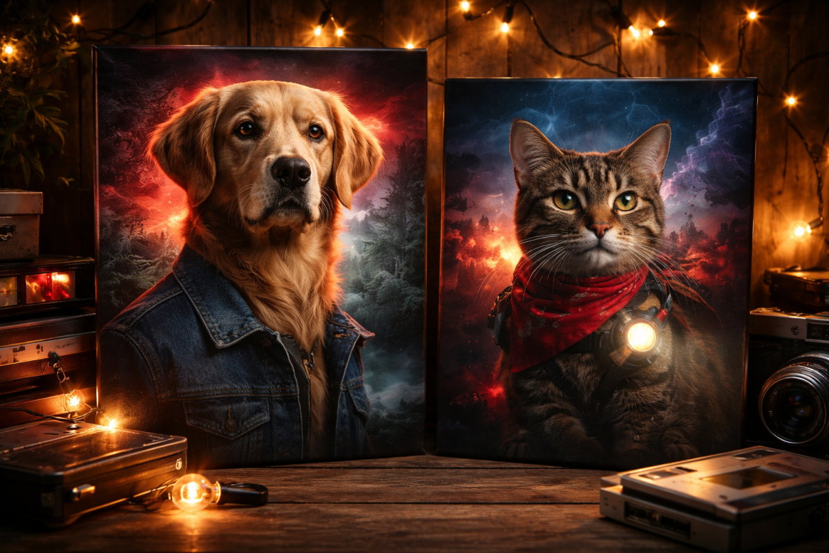 Stranger Things Themed Pet Portraits: Retro Wall Art for Pet Lovers