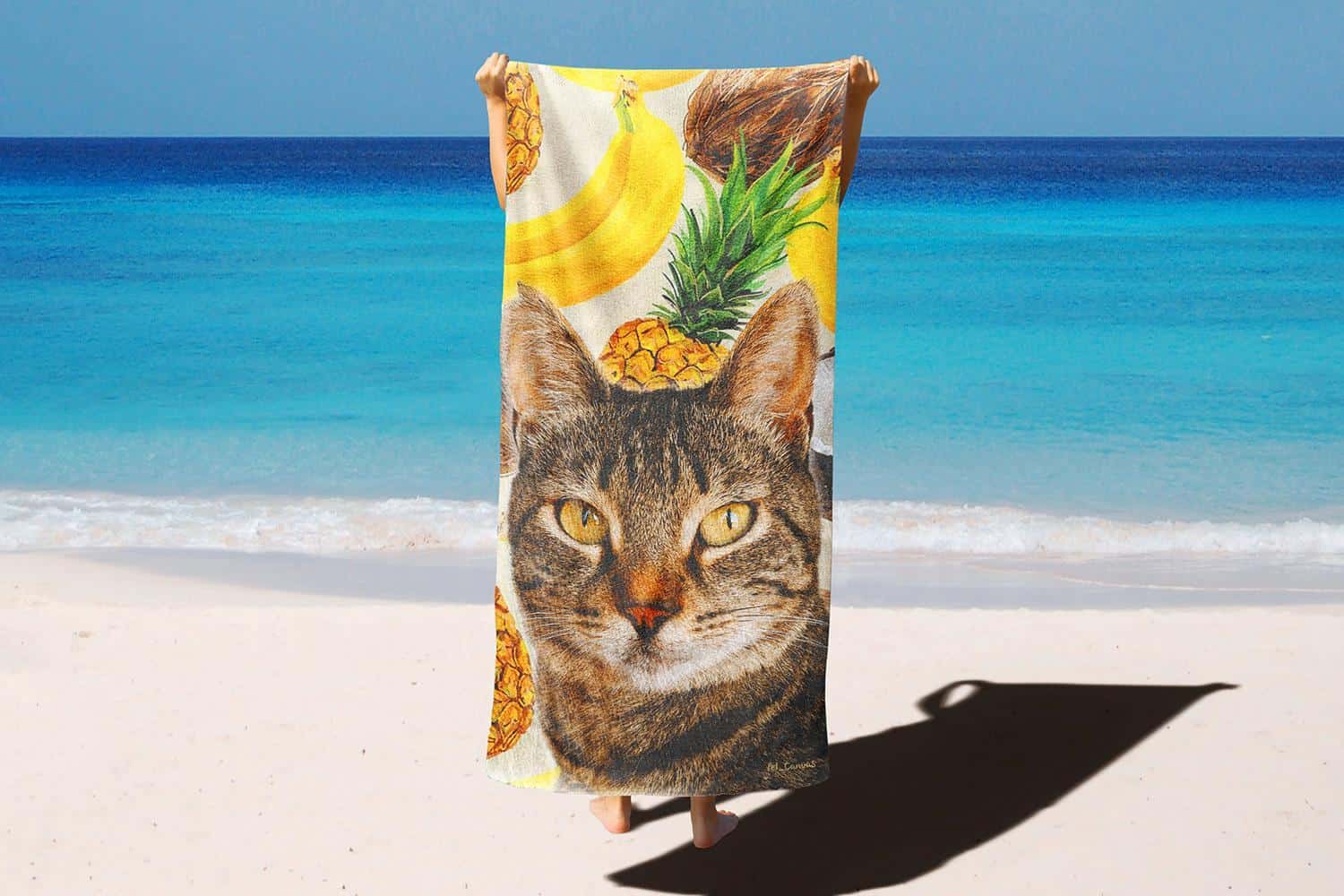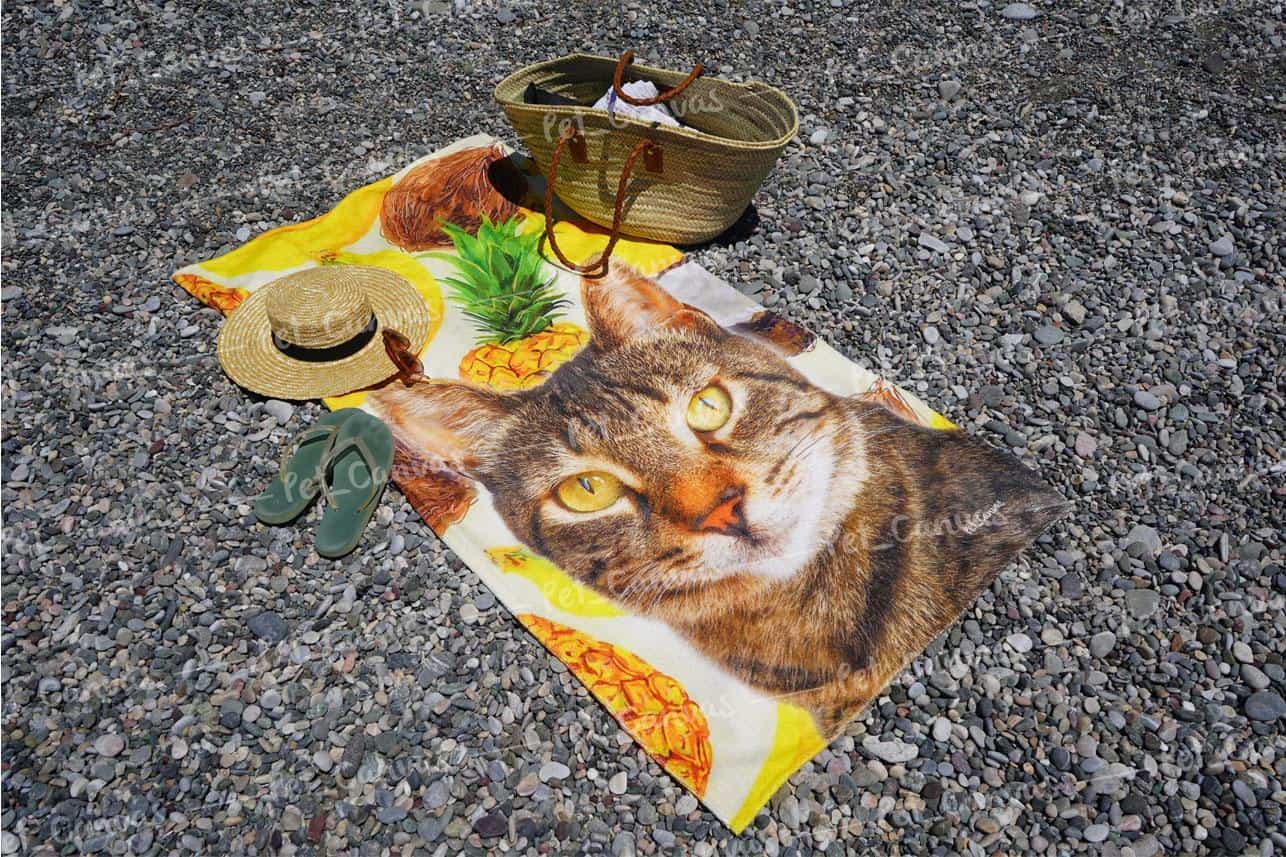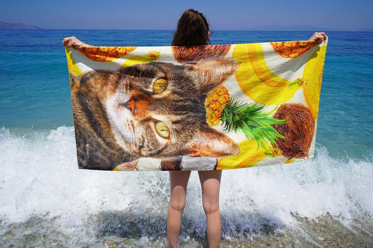 Would you like a custom-made beach towel featuring your pawed friend, designed with clouds pattern, to accompany you every time you’re at the seaside?