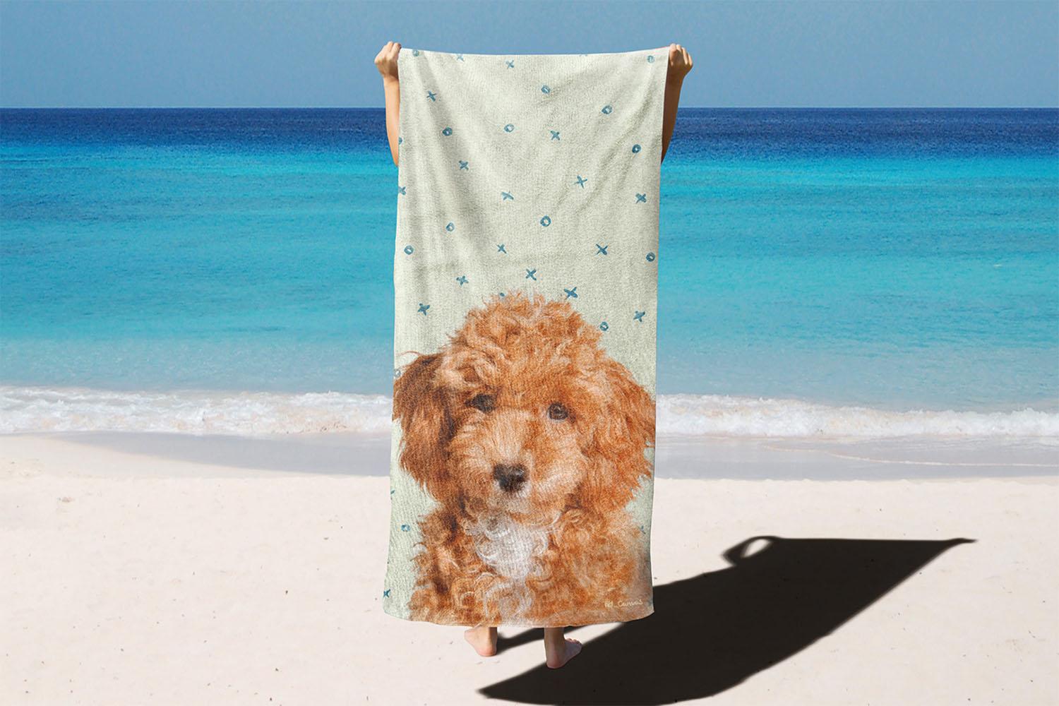Would you like a custom-made beach towel featuring your pawed friend, designed with clouds pattern, to accompany you every time you’re at the seaside?