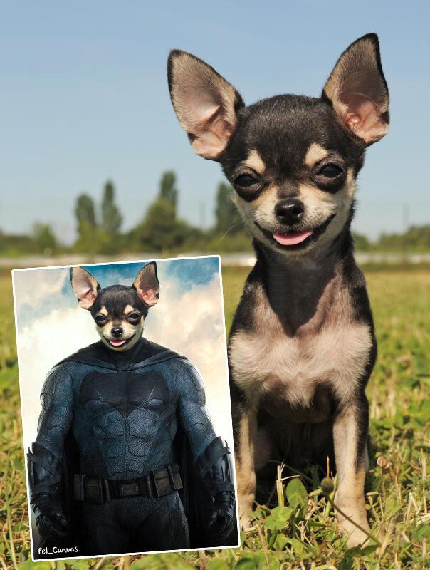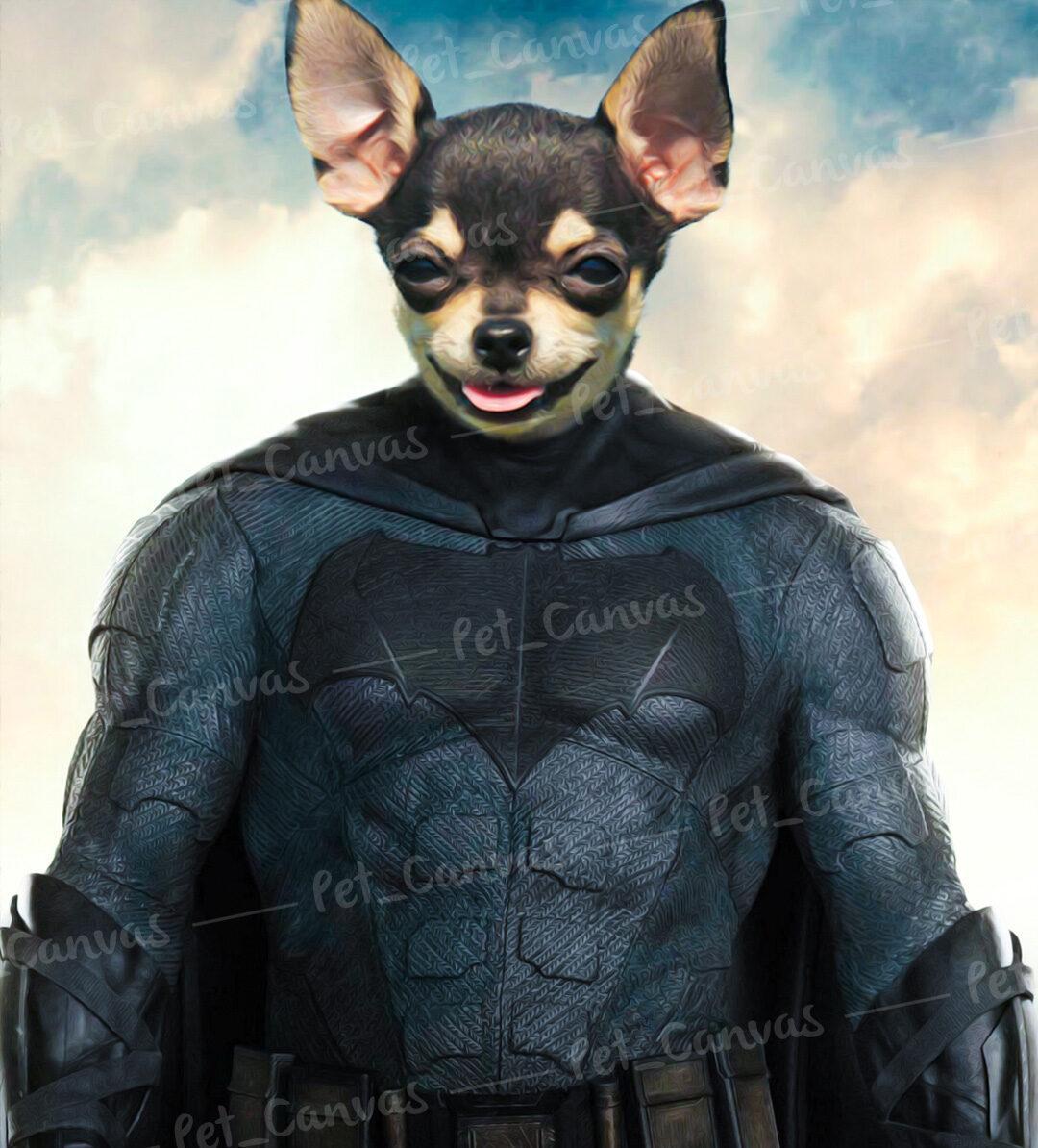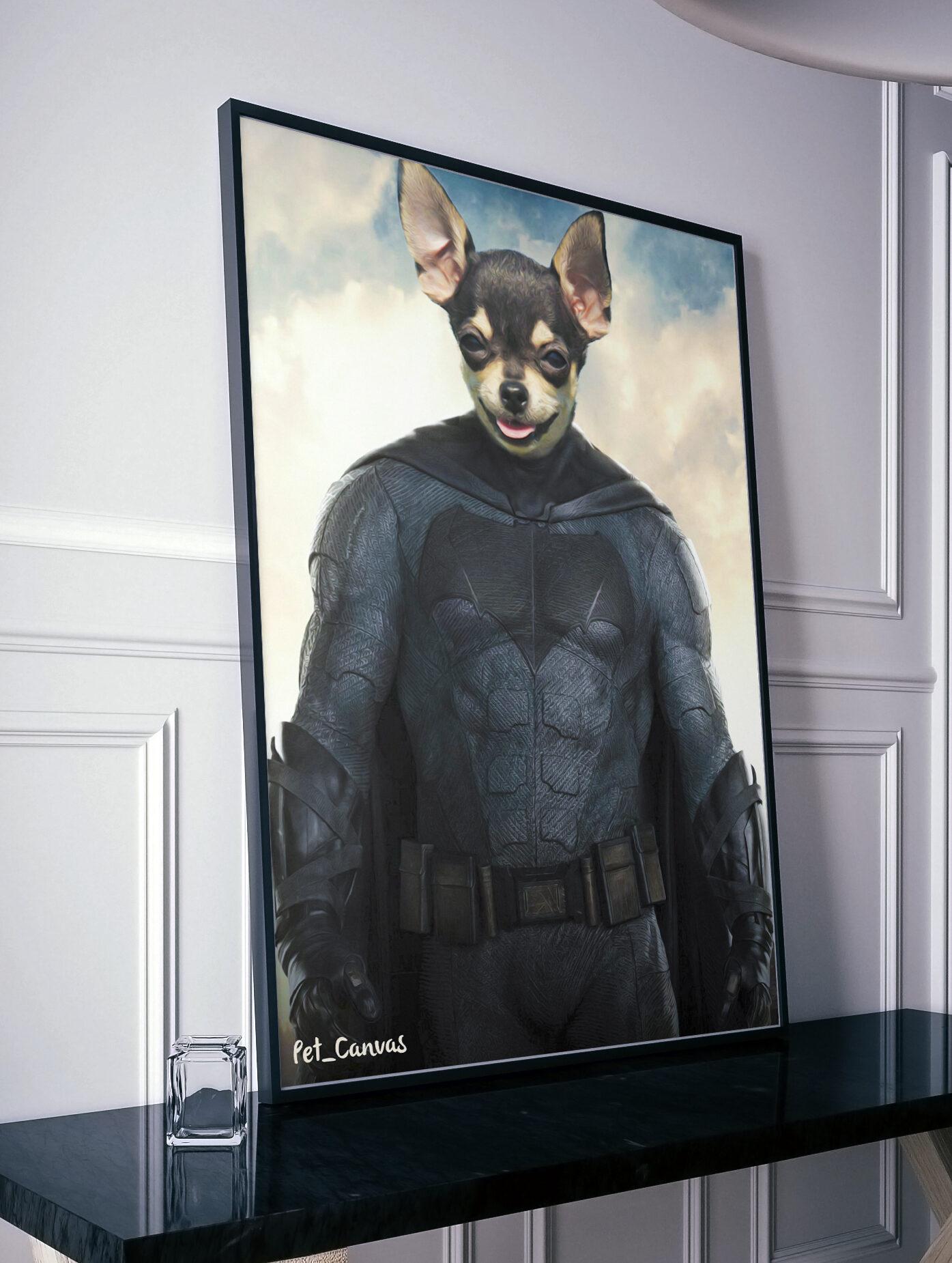 Display your paw friend in the best part of your home with the Super Hero #9 (Batman) portrait!