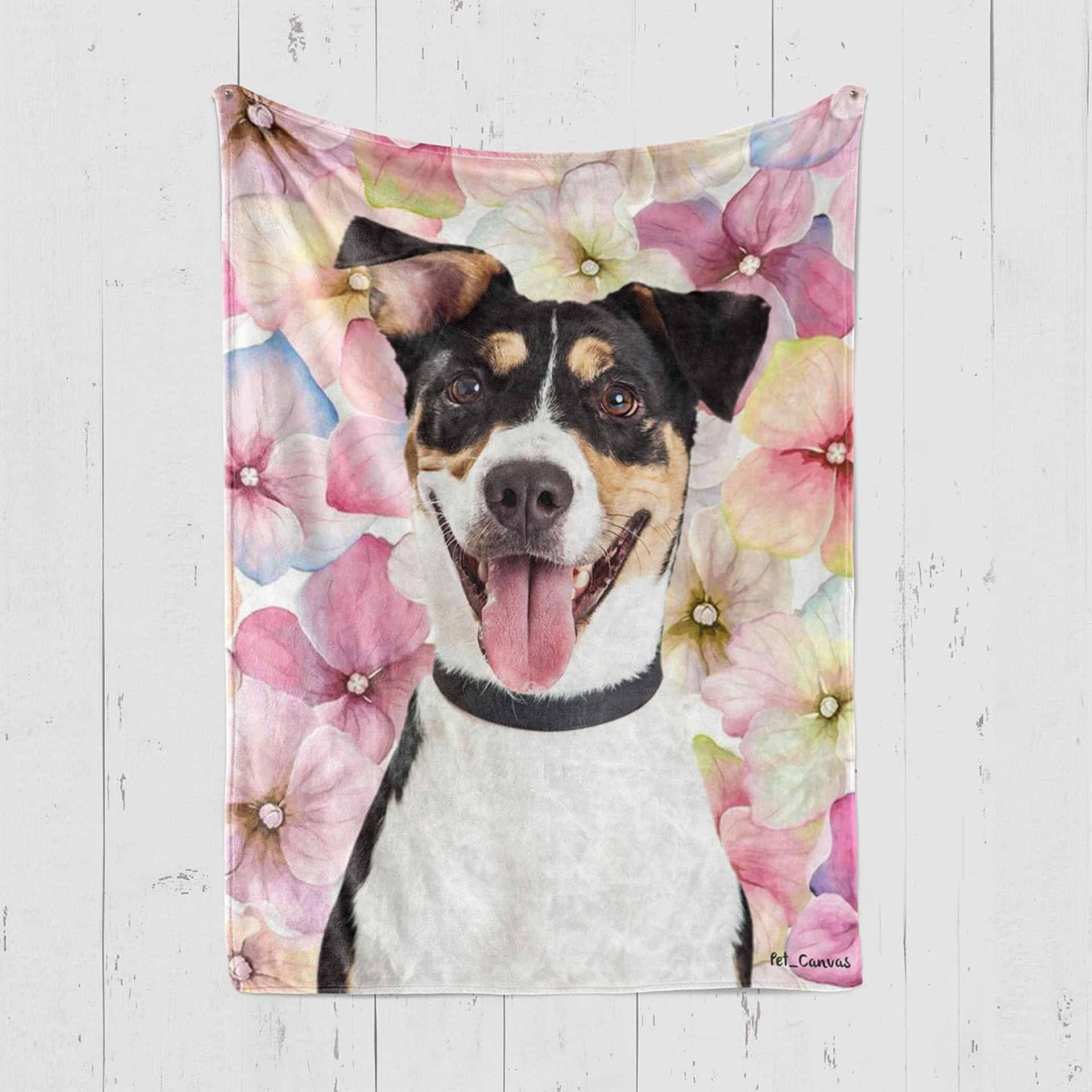 Would you like to see your paw friend’s face on the Floral Party patterned fleece blanket?
