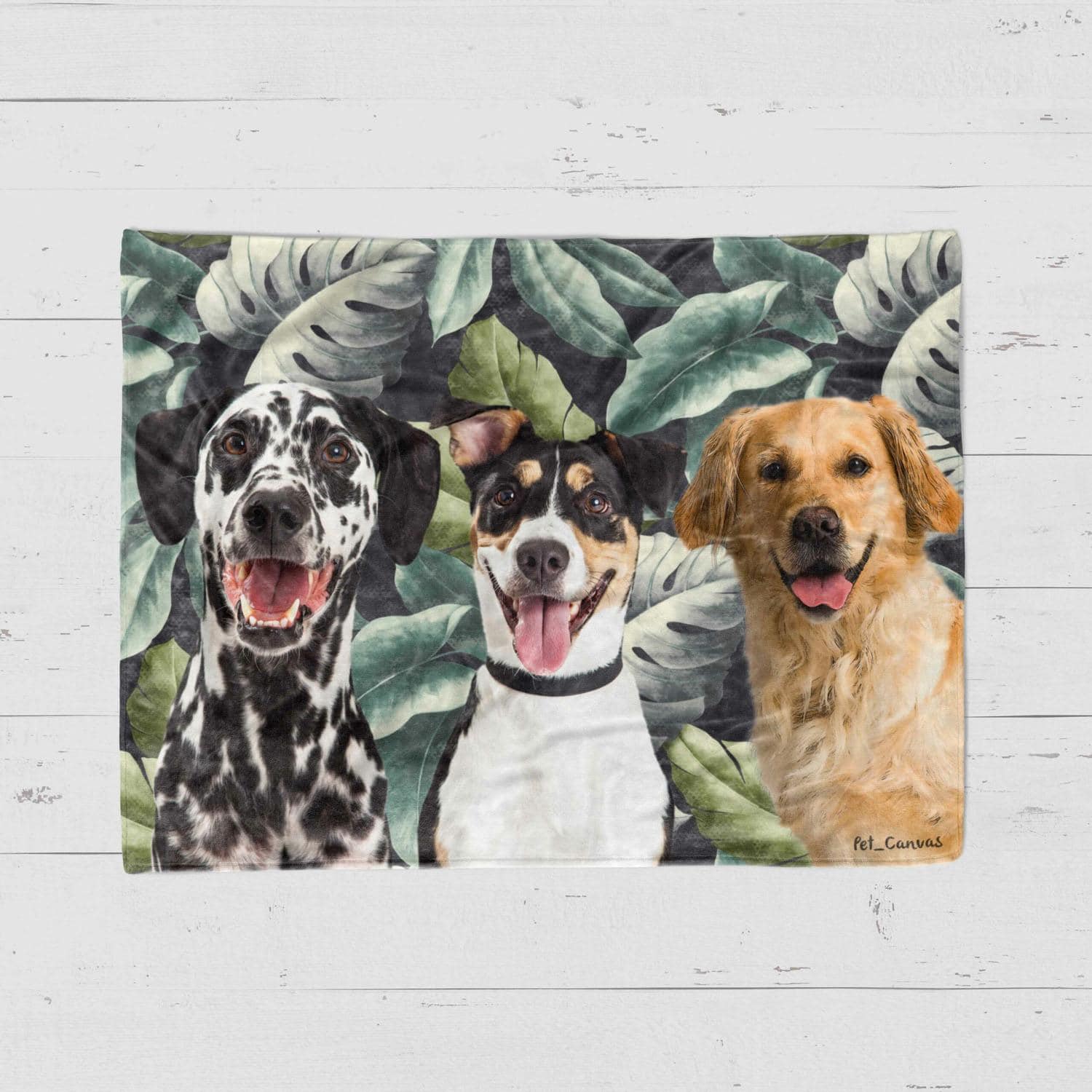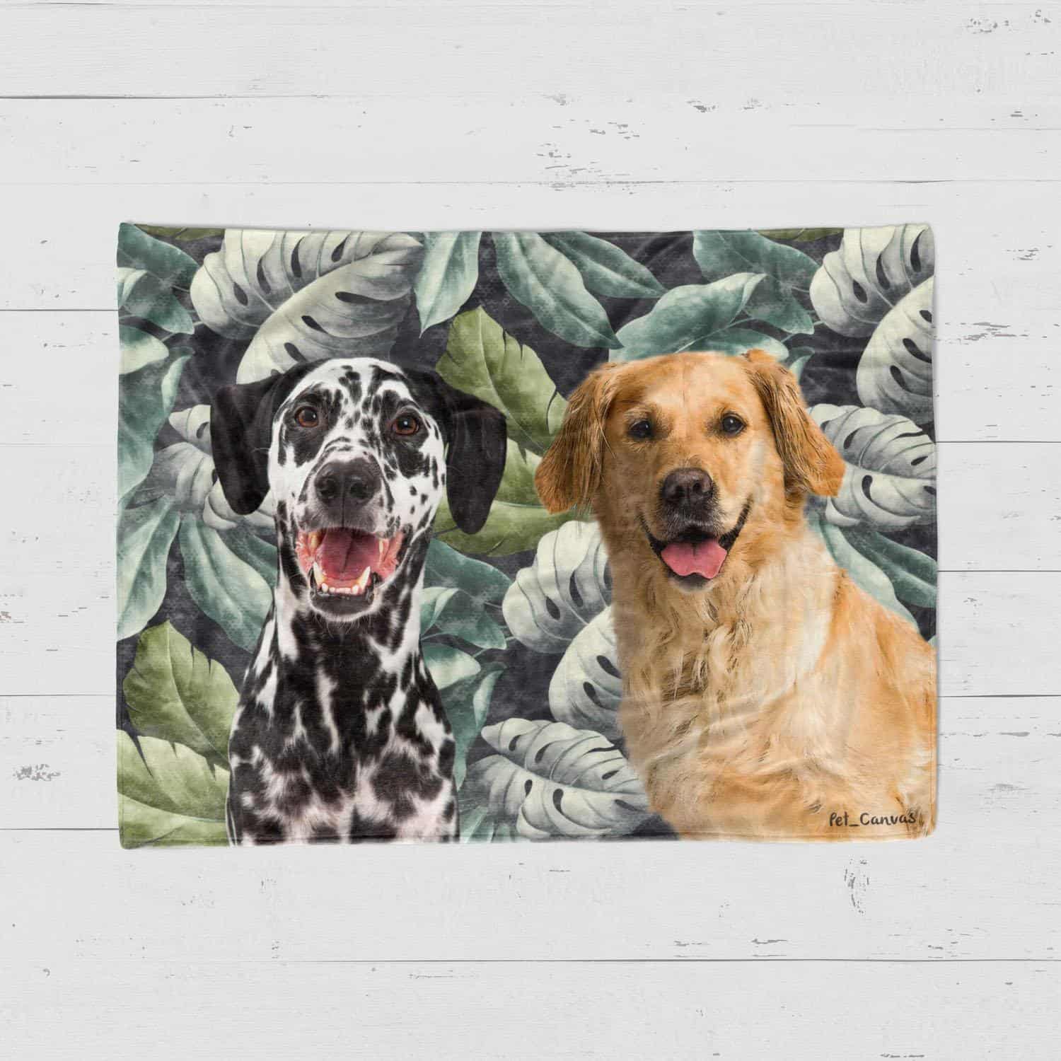 Transform your pawed friend’s portrait into a cozy fleece blanket by selecting our #1 leafy background design!