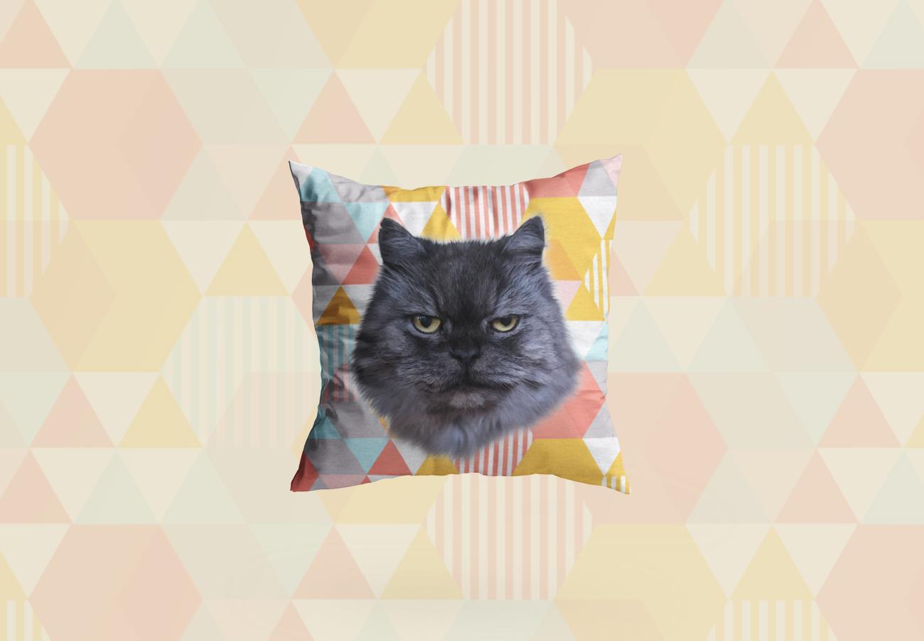 Would you like to see your beloved pet transformed into a custom Geometric Shapes Pop Art design on our personalized pillows?