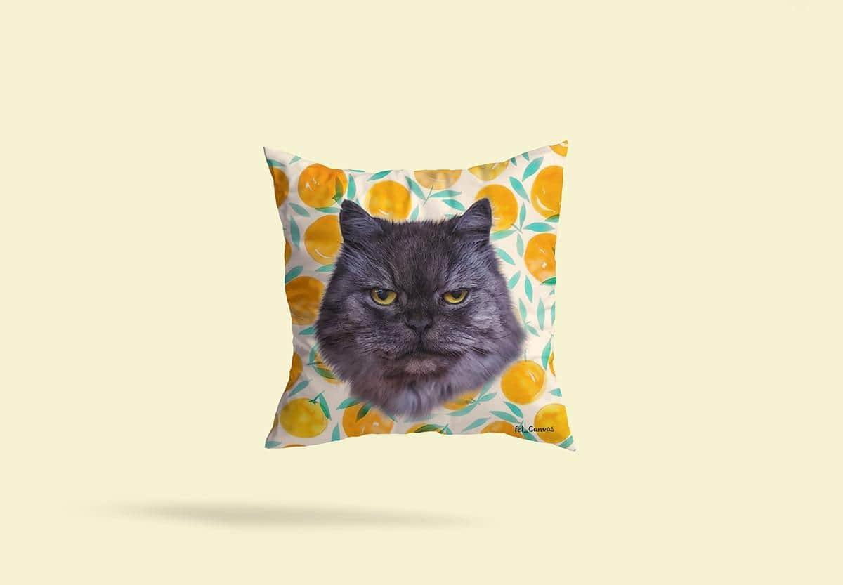 Would you like to see your beloved pet transformed into a custom Orange Fruits Pop Art design on our personalized pillows?