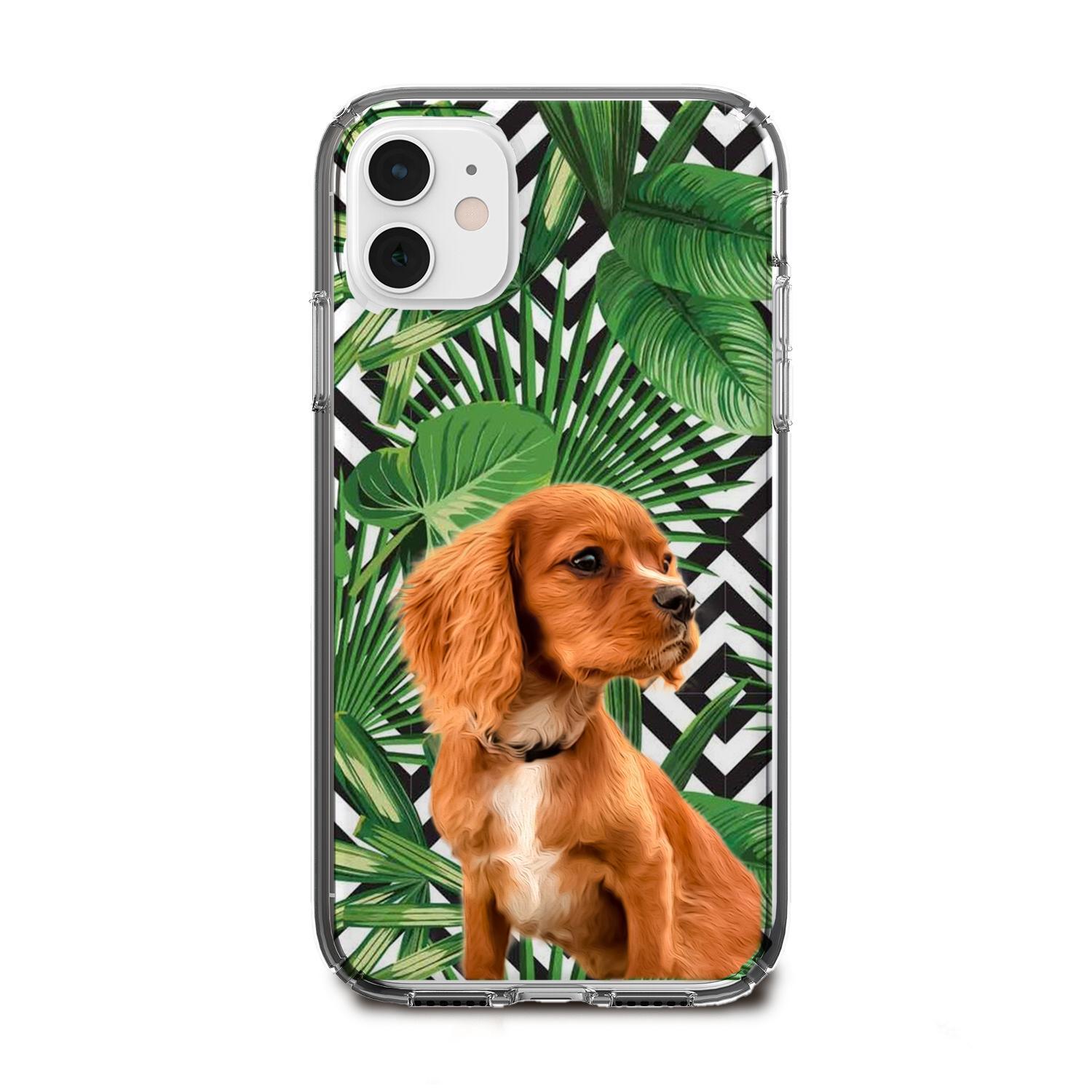 yaprak desenli köpekli telefon kılıfı