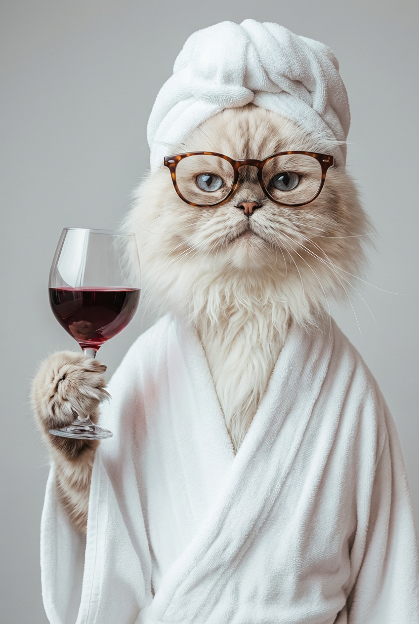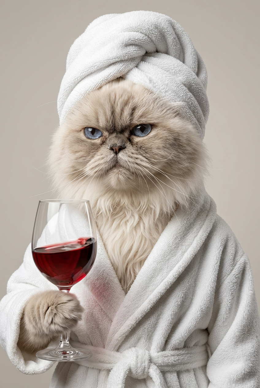 This piece of art captures that one-of-a-kind mix of class and humour, turning your pet’s bath-time mood into a work of art. Every brushstroke—from the fluffy towel wrap to the confident pose—screams luxury, style, and personality.